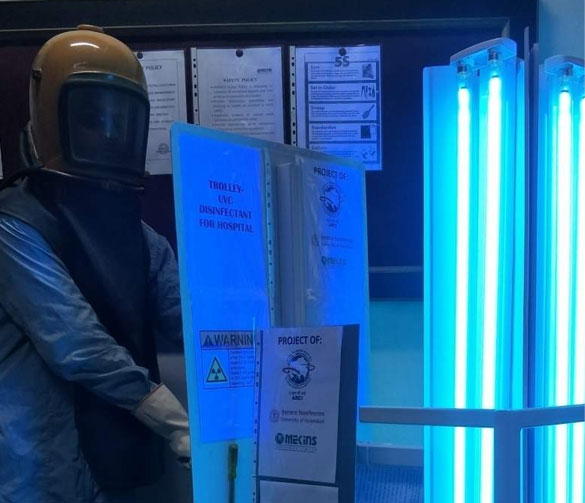 To disinfect spaces with difficult maps and requires human operator control. The best of UV-C zero combined with operator driving the robot remotely using tablet. Ideal for small office spaces, banks, dental clinics, gyms etc.